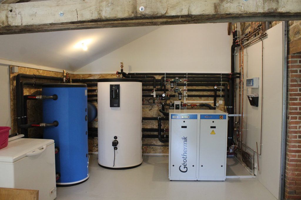 Installation d’une géothermie 30kW de puissance de chauffage en forage verticale. Ballon tampon de 600L et ballon ECS 800L